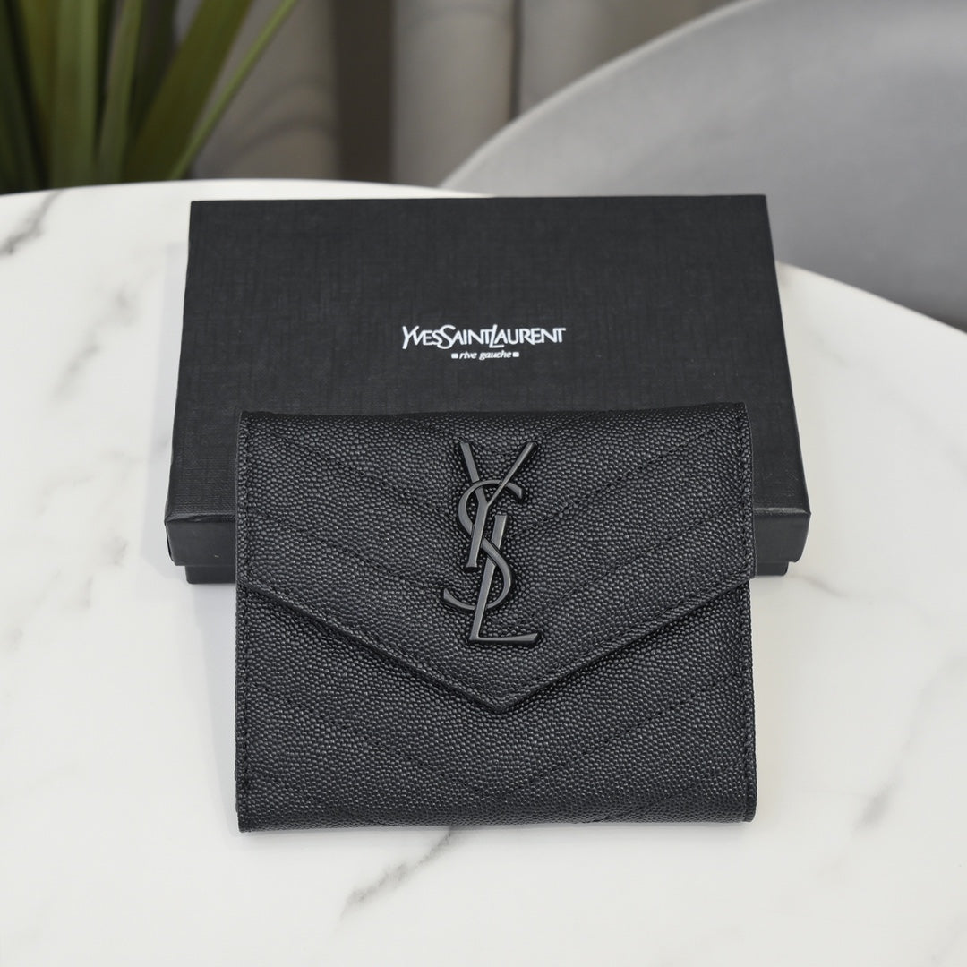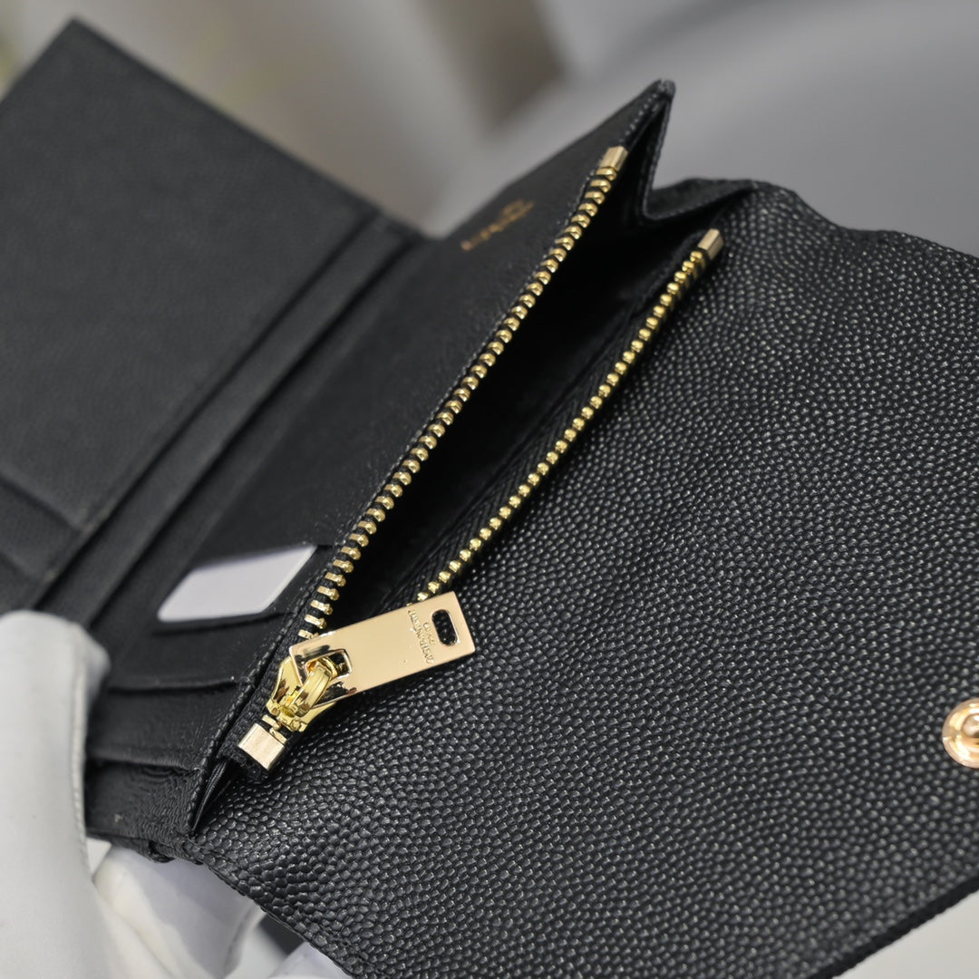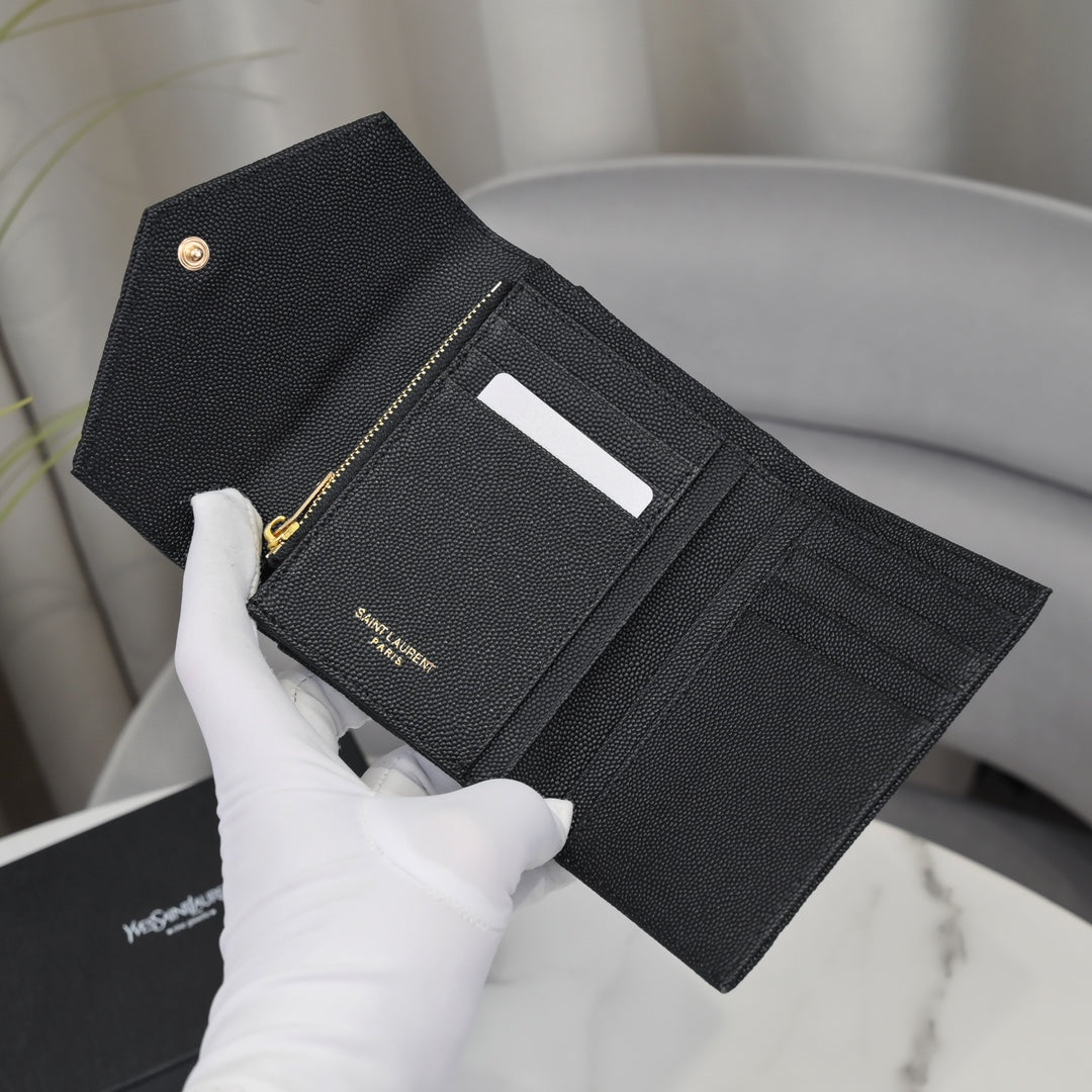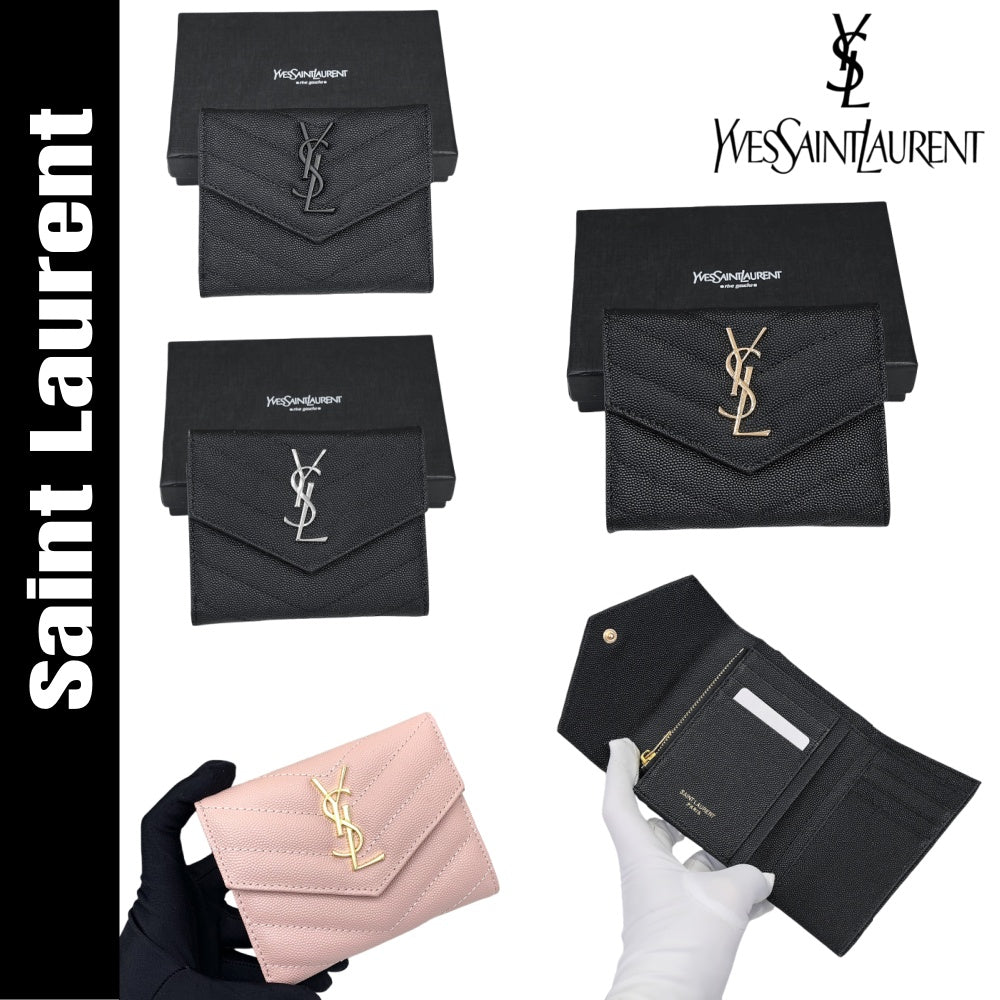 【サンローラン】大人気ロゴ 小銭入れ付き 三つ折り財布4色