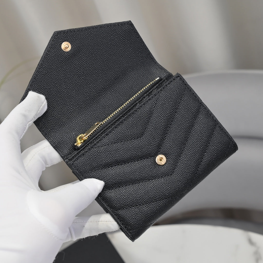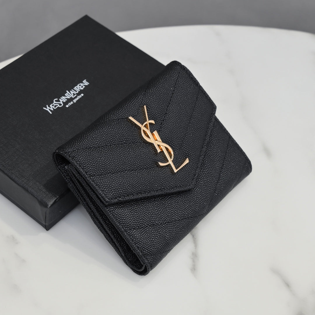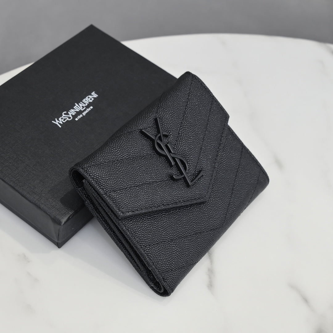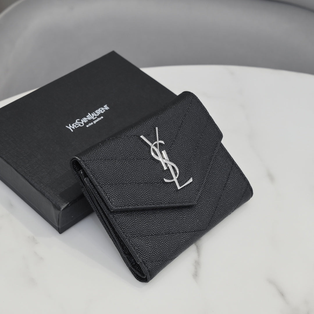 【サンローラン】大人気ロゴ 小銭入れ付き 三つ折り財布4色